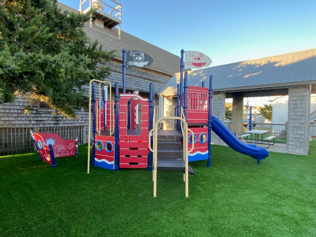Our community playground, located behind the post office area, is a fun and safe place for all children. It is easily accessible and ADA compliant. There is a picnic area and trash bins. We ask that you refrain from having pets in the area due to the artificial turf on the playground.